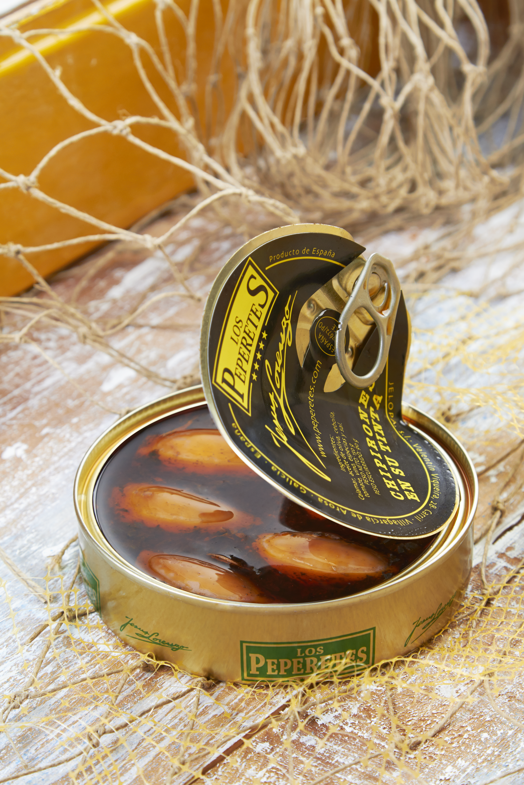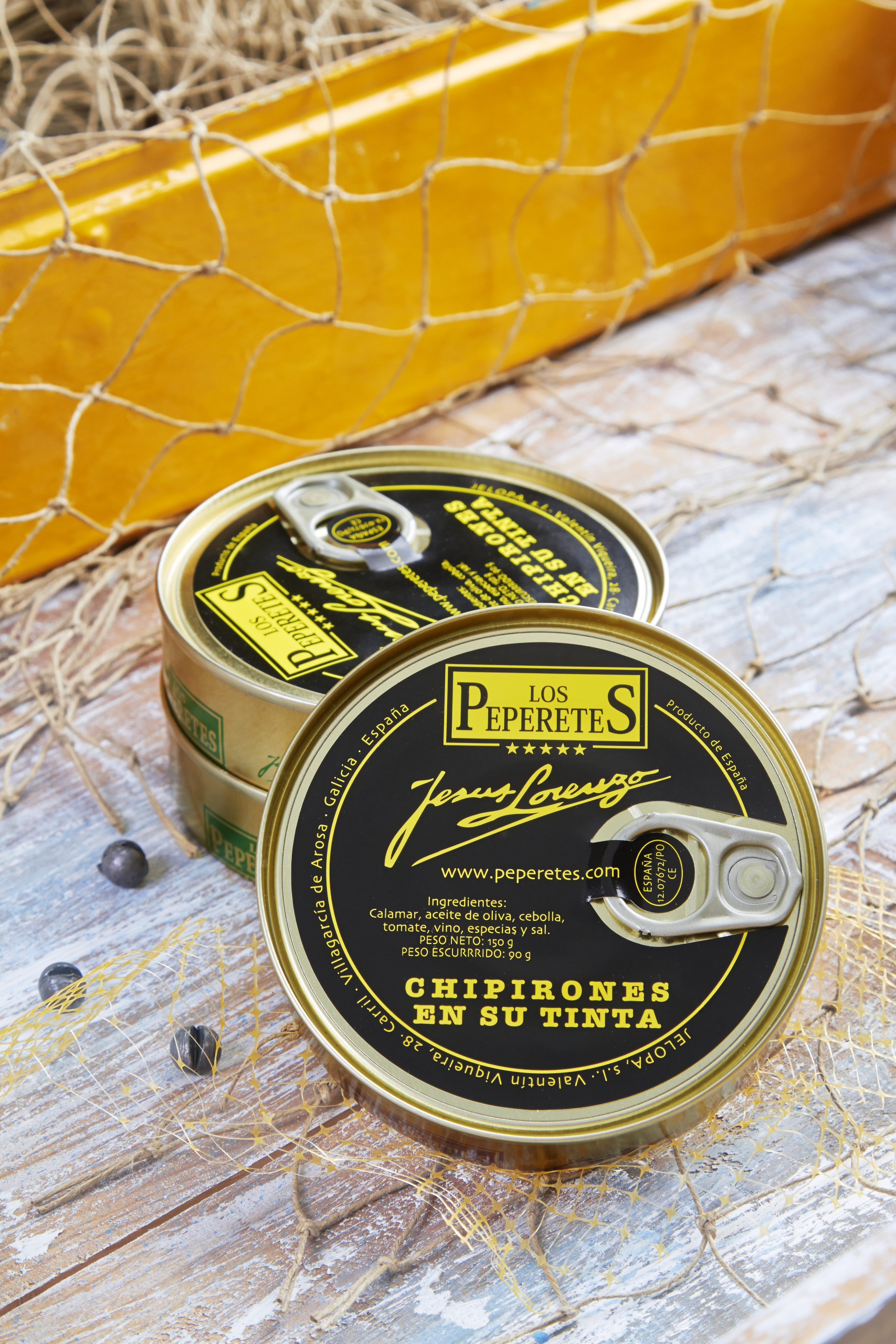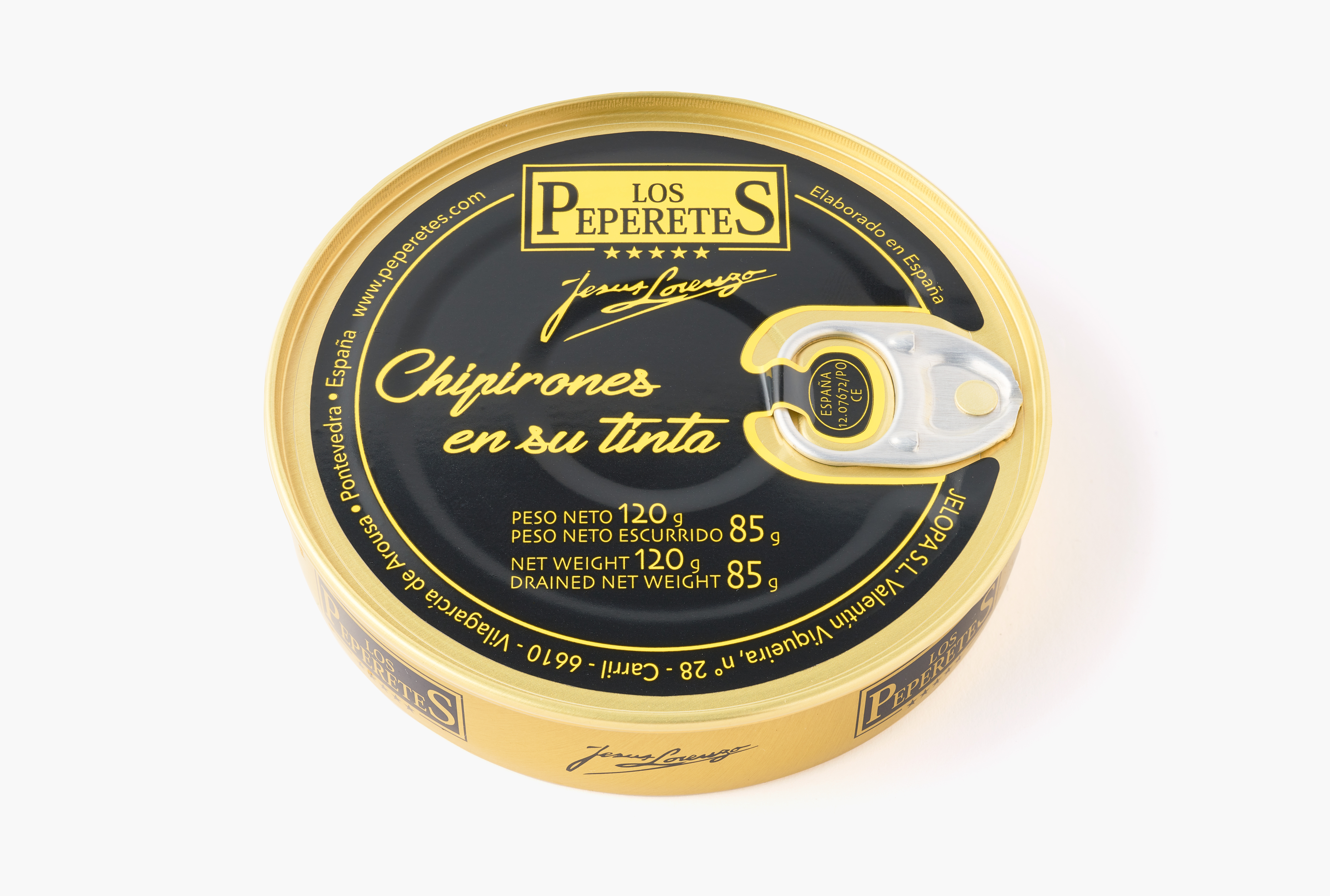 Chipirones en su Tinta Los Peperetes: selected squid, cleaned and placed by hand, stewed in its ink with a sauce of onion, tomato and garlic, and a dash of white wine. The result: tasty black sauce, tender squid and clear marine flavor. Enjoy them as they are, warm, or accompany them with white rice, pasta or toasted bread.